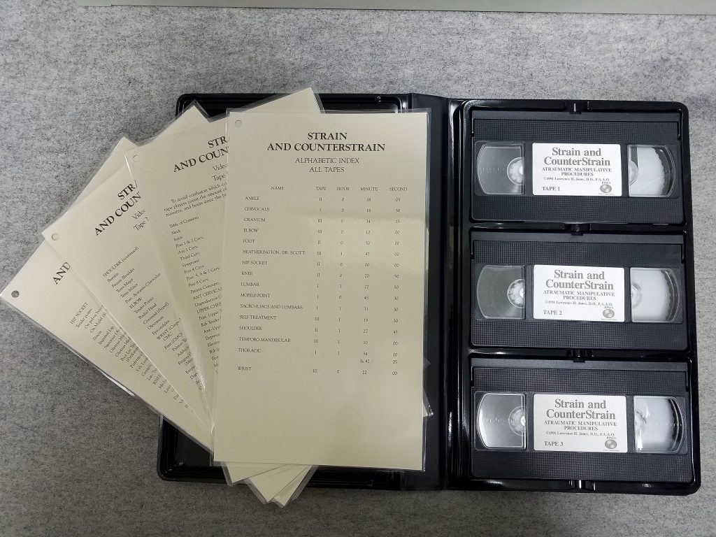 一般でも購入できる書籍コーナーにはLawrence H. Jones, D.O., F.A.A.O.のStrain and Counter Strain VHS3本セットも販売しています。レアなコレクターズアイテムです。